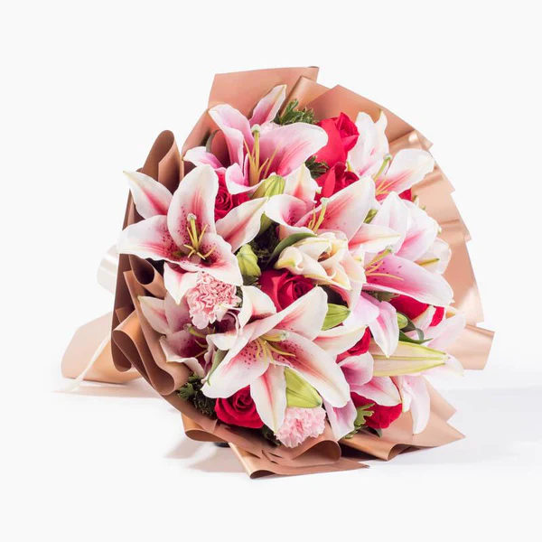 As gorgeous as London’s beautiful neighborhood, this beautiful bouquet comes with red roses, pink lilies, and light pink carnations wrapped to perfection. A true all-rounder for a variety of occasions such as birthdays, romance anniversaries, etc.